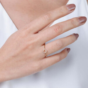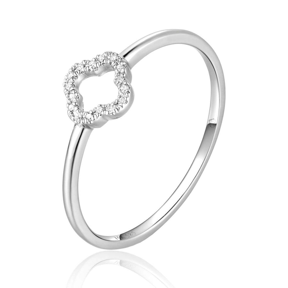 Adorn your beloved with this stunning 14k diamond Alhambra frame dainty ring. Individually hand-crafted and made with only the finest gold, this luxurious ring is set with a bright and beautiful diamond, emphasizing the graceful design and creating an exquisite piece of jewelry fit for the most extravagant occasions. Additional metal options are available. Please inquire below for further information.
