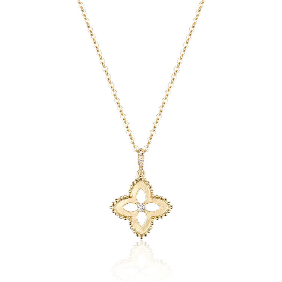 Elevate your jewelry collection with our exquisite Beaded Clover Diamond Necklace, crafted from the finest 14k gold. The clover design symbolizes good fortune, making this piece perfect for those seeking a touch of luck in their everyday lives. Embellished with sparkling diamonds and stunning beading, this necklace exudes luxury and sophistication. Perfect for special occasions or as a statement piece to elevate any outfit.