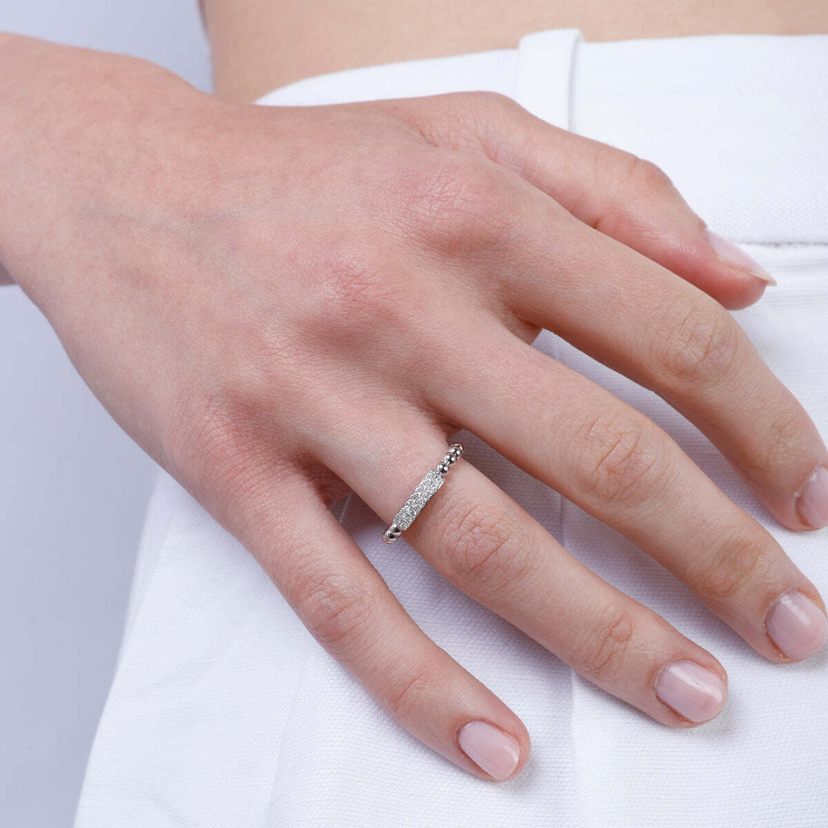 Beaded Diamond Bar Ring