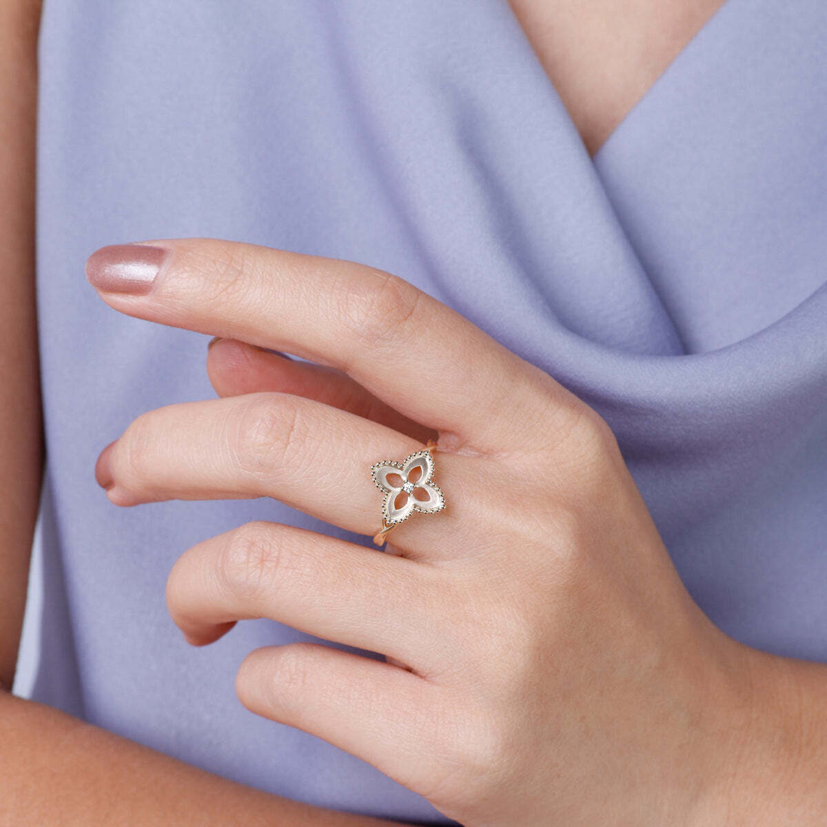 Beaded Floral Diamond Ring