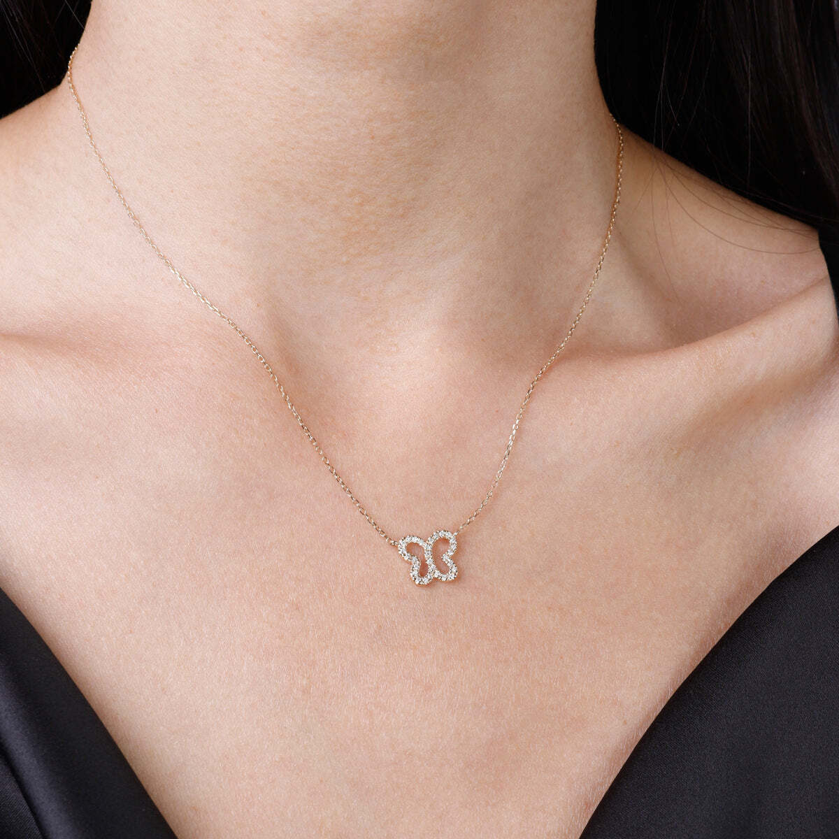 Prepare to swoon over this breathtaking Delicate Butterfly Necklace crafted entirely from 14k gold. This opulent piece of jewelry boasts a delicate chain and a butterfly pendant, whose wings have been sculpted with great attention to detail. The shimmering gold illuminates your neck with a luxurious glow, making this an ideal accessory for any event or occasion. Buy it today to grace yourself with unparalleled luxury and style.