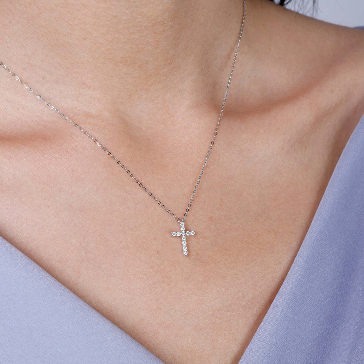 Experience the pinnacle of luxury with our Delicate Diamond Cross Necklace, crafted from stunning 14k gold. Dazzling diamonds create a radiant sparkle that is as elegant as it is understated, perfect for any occasion. This exquisite piece is a testament to your undeniable style and refinement, making it a treasure to wear and cherish for years to come.