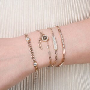 Picture yourself slipping on our Diamond Tennis Link Bracelet, feeling the gentle weight of its exquisite design against your wrist. Each diamond is like a small, sparkling story waiting to be told, catching the light with every gesture. Whether it's a special occasion or an everyday indulgence, this bracelet becomes a part of you, a reflection of your personal style and the elegance you bring to every moment.