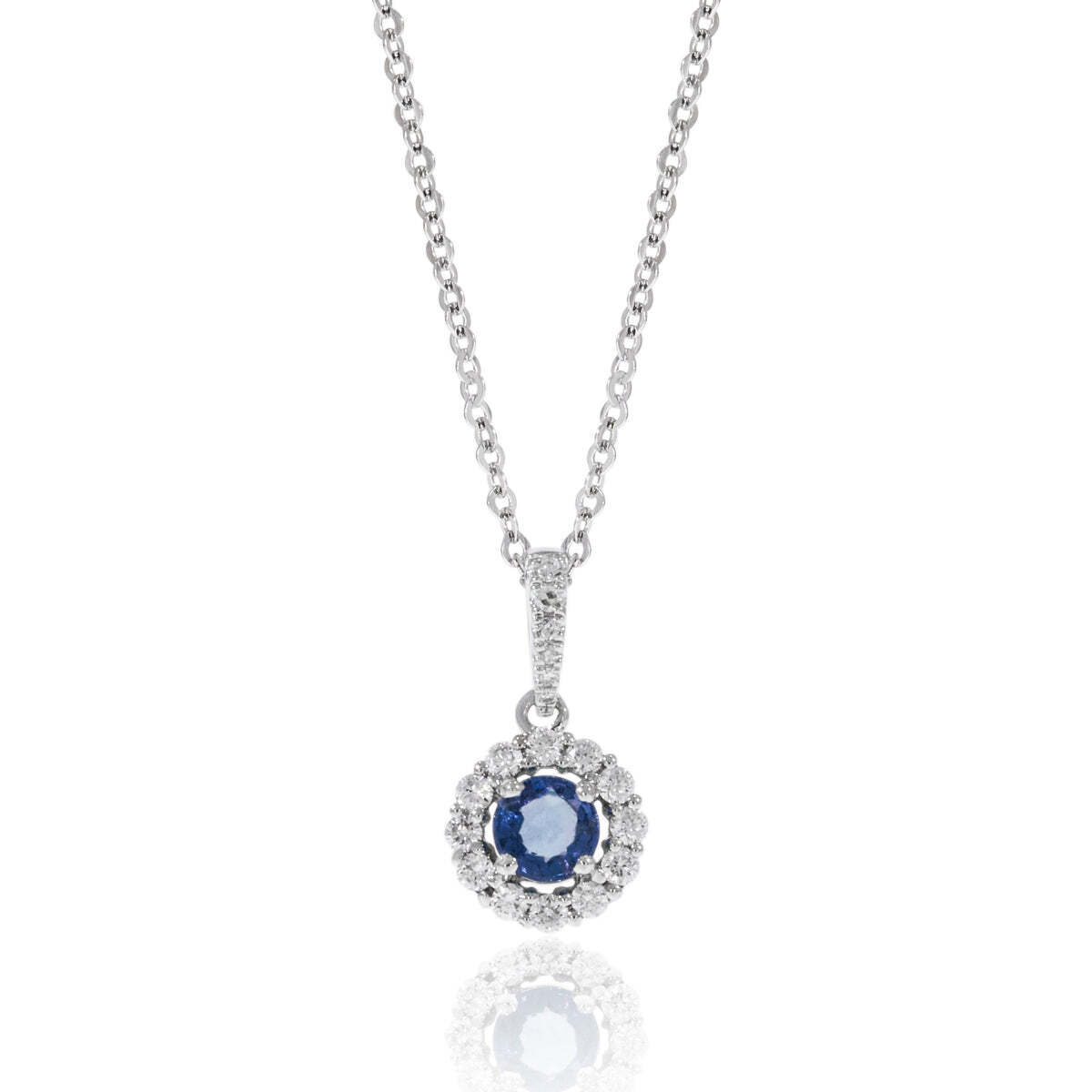 Gold Halo Round Necklace - Sapphire