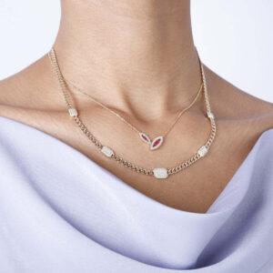14k diamond art deco necklace. Crafted in vintage style with its timeless beauty, this classic necklace is a must-have staple to add to your collection.