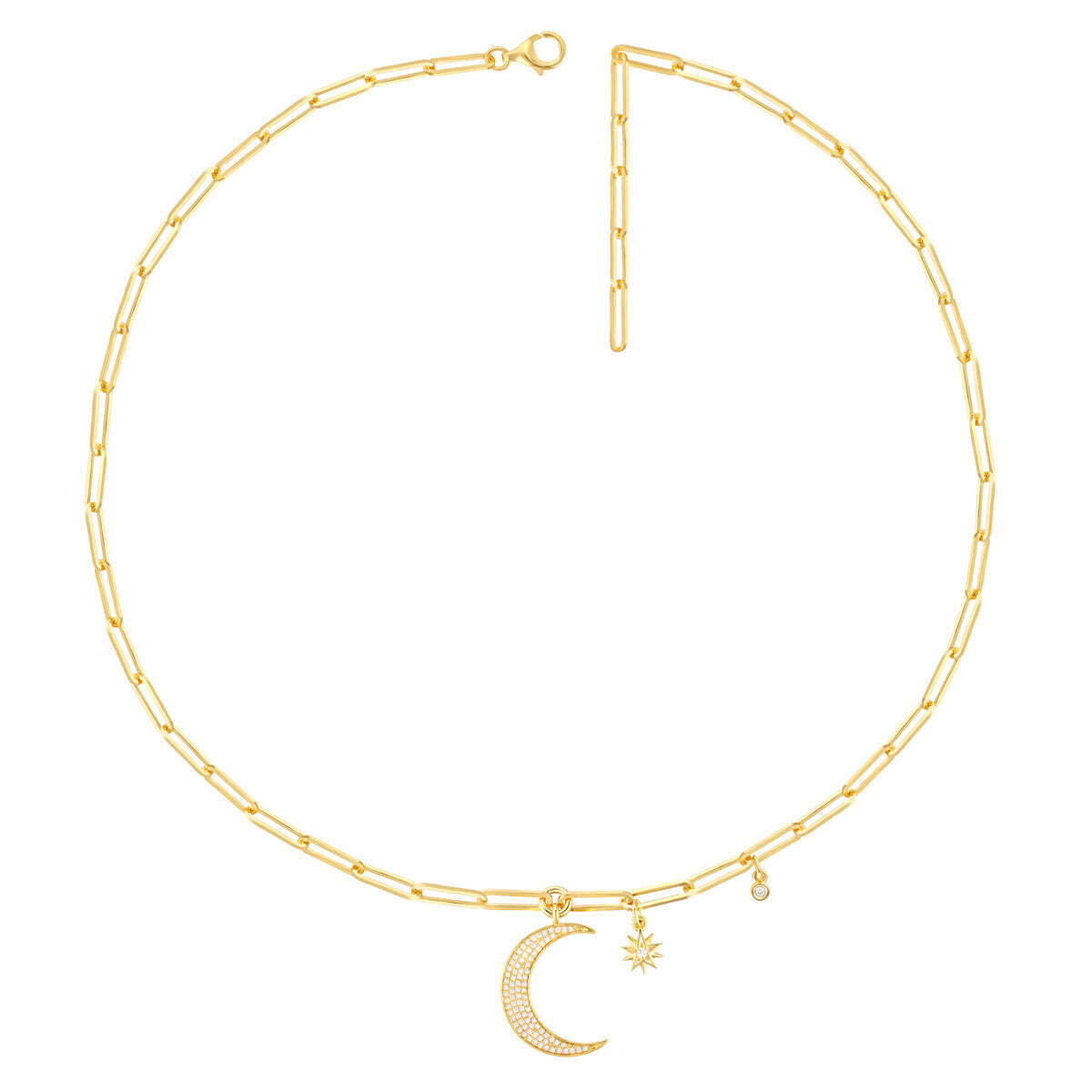 Subtle and sophisticated, the Moon Paperclip Chain features a modern styling that's perfect for everyday wear. Wear it long or short, with a variety of necklaces or neckerchiefs this piece can be as versatile as you are.