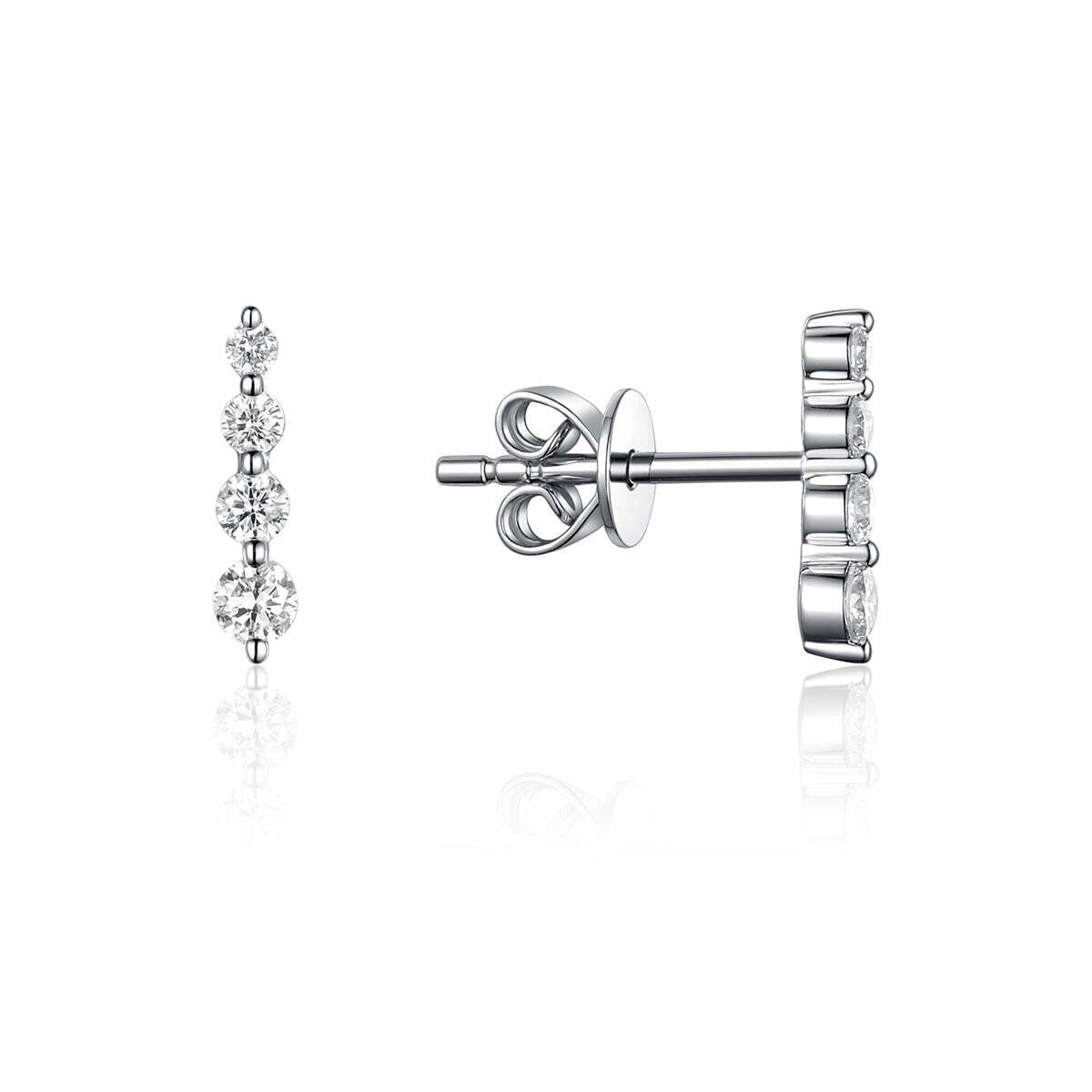 Single Prong Bar Studs - Round Diamonds