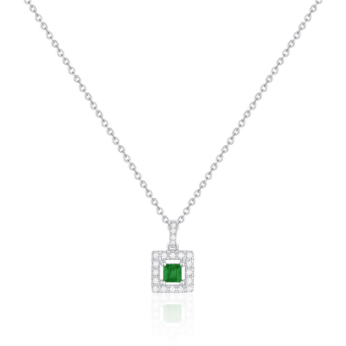 Square Open Halo Necklace - Emerald