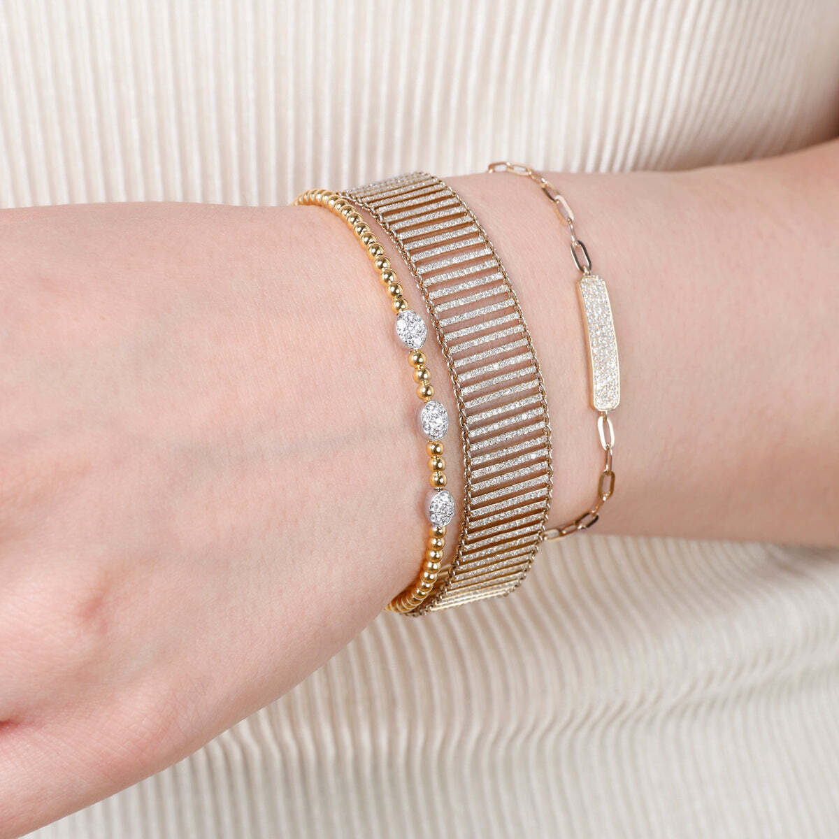 Elevate your wrist game with our Stackable Beaded Gold Bangle. This bangle is a masterpiece of intricate design, featuring delicate beaded detailing and crafted from gleaming 14k gold. Designed to mix and match, these Bracelet allow you to create your unique style statement. Stack them high for a bold look or wear one for a touch of understated elegance. Add a touch of versatility and luxury to your collection with these stackable beauties.