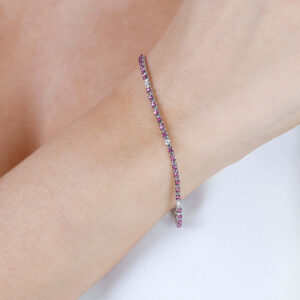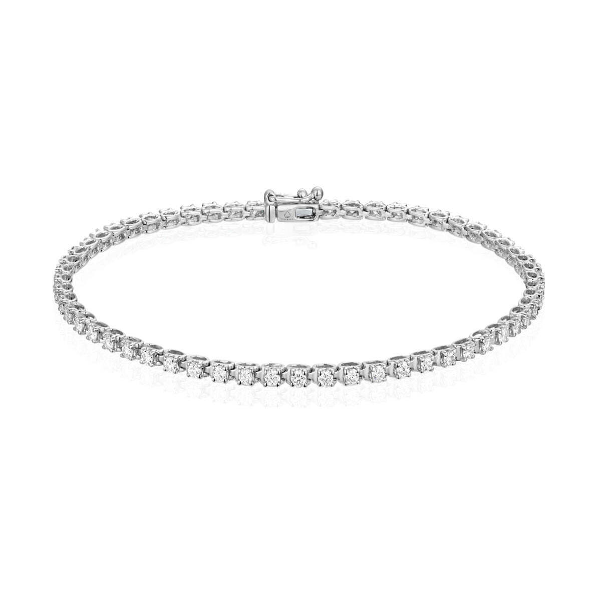 Show off your love for fashion with this 14K gold one row round bracelet. This sleek and classic design is simple yet elegant, for a timeless look that can be worn day after day. Additional metal & gemstone options are available, pricing may vary. Please inquire below for further information.