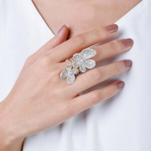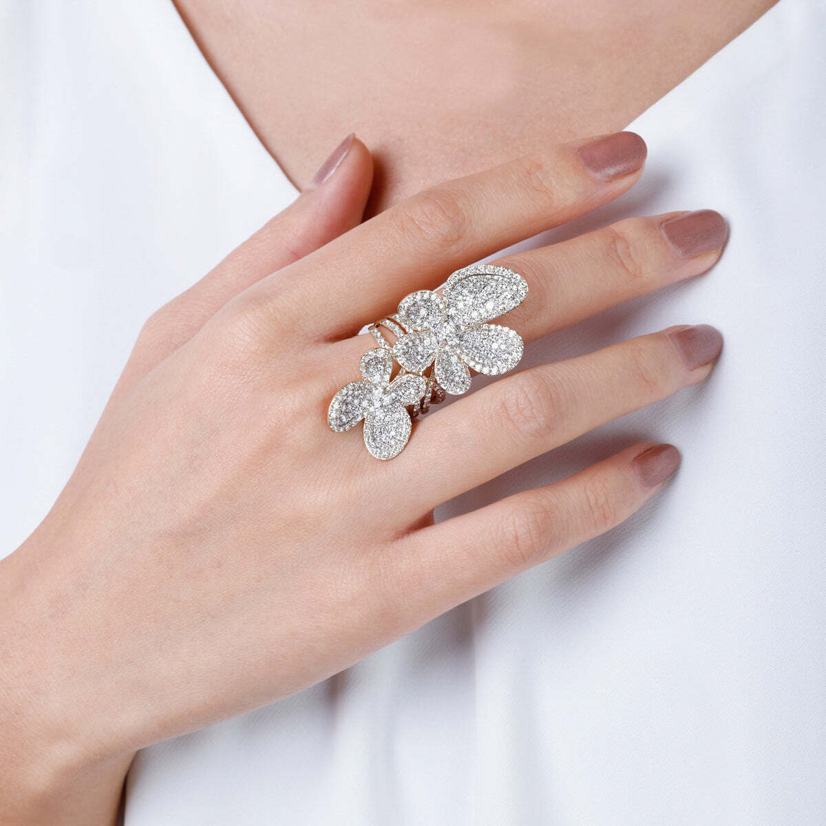 Introducing this exquisite and unique statement flower ring, crafted out of 14k gold, and lined with sparkling diamonds. This divine and luxurious piece is sure to make an unforgettable impression and add a touch of elegance to your look. Celebrate a special moment in your life with this statement flower ring, perfect for a gift or celebration.