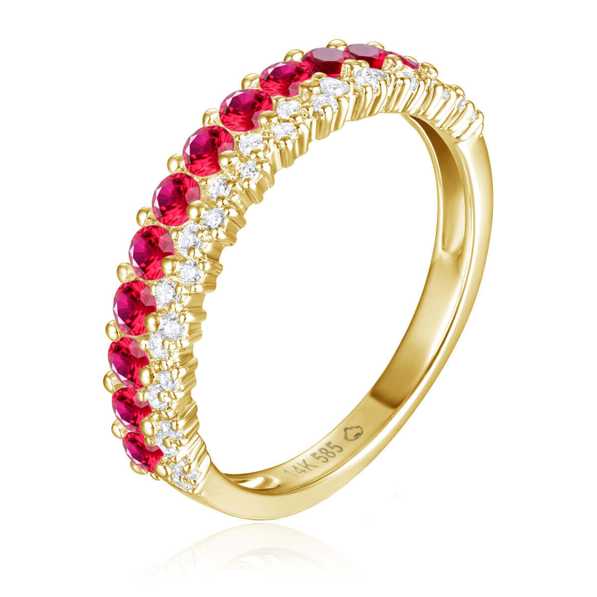 Our 14k precious stone Two Row ring is truly unique, with its intricate detail and exquisite design. It features a beautiful cut out pattern of stones along the band and on the shank. The color of the center stone may vary due to availability. Additional metal & gemstone options are available, pricing may vary. Please inquire below for further information.
